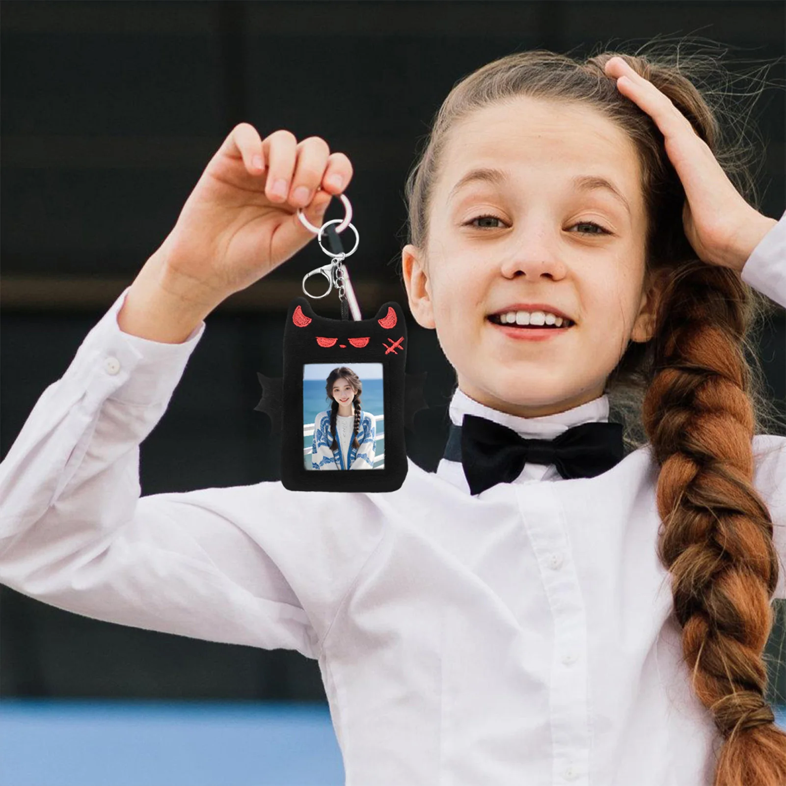 Uso Versátil: Este porta-fotocard de pelúcia com design de diabinho é perfeito para organizar cartões de crédito, documentos de identidade, cartões de transporte público e até cartões postais, mantendo-os seguros e sempre à mão.